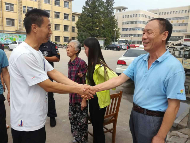 在昌黎校区门口,老人的儿子了解情况后当面致谢,表示未曾想80多岁的老母亲行走不便竟然走出了这么远,临近中秋节老人走失,家人都特别担心老人安全,万分感谢两位同学在危难之时伸出援手,感谢帮助寻找的学校老师与110民警,并向学校教育出如此优秀的学生表达谢意。